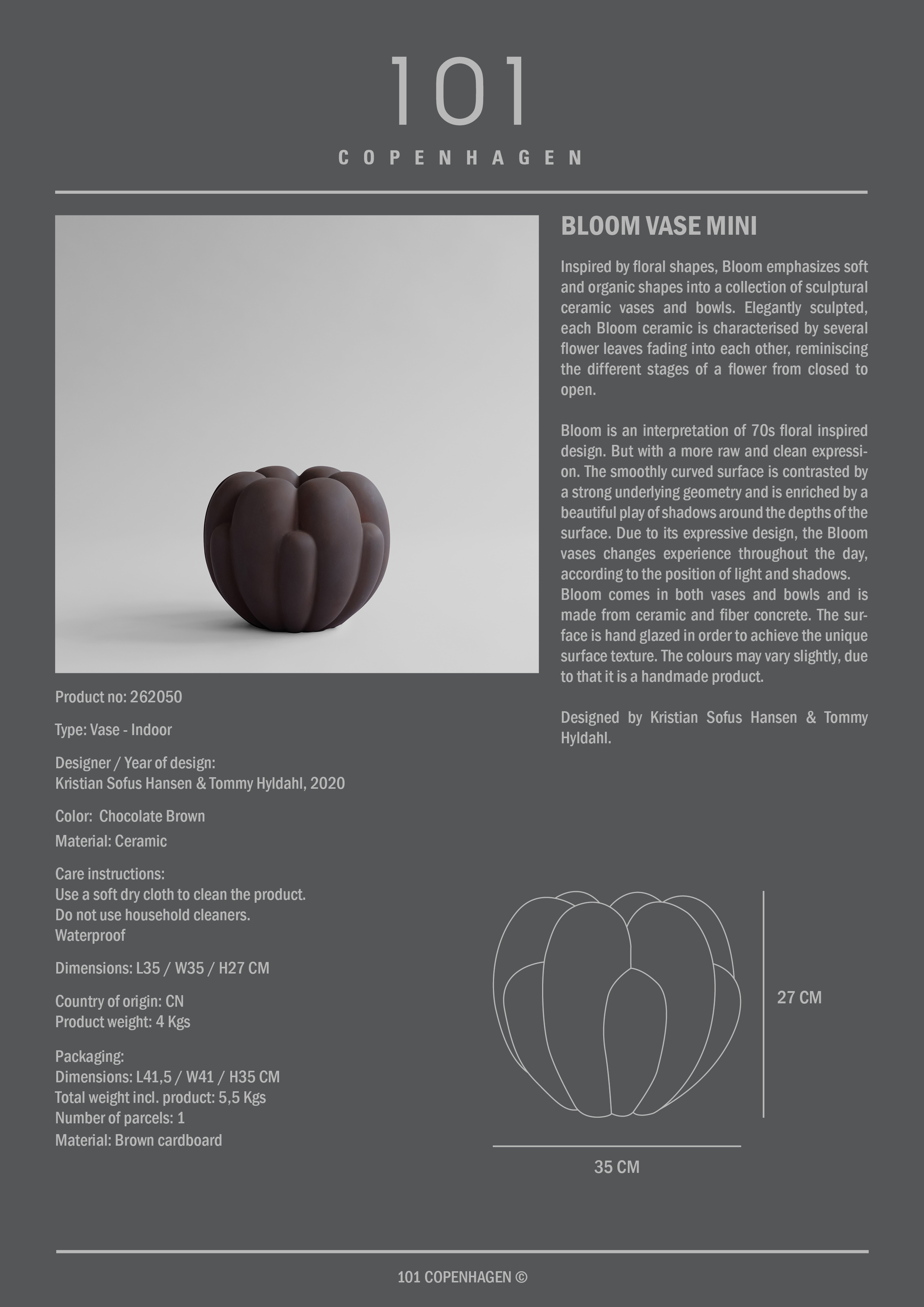 101 Copenhagen Bloom Vaas Mini Chocoladebruin