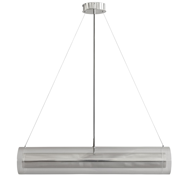 Frame is een verlichtingsserie die zich richt op het omlijsten de lichtbron door lagen contrasterende materialen te combineren. Geperforeerd metaal krijgt een zachtere uitstraling door een buitenste laag doorzichtig glas met afgeronde uiteinden, wat een balans creëert tussen scherpte en zachtheid. De geïntegreerde led- lichtbron, verborgen in wit acrylglas, verspreidt het licht gelijkmatig en creëert een warme gloed die de diepte van het ontwerp benadrukt. De serie is verkrijgbaar als wandlampen in twee maten, 50 cm en 100 cm, als hanglamp van 100 cm en als de Frame Pendant Fat met een grotere diameter voor een meer opvallende uitstraling. Frame combineert een industriële uitstraling met zachte elegantie en creëert een sfeervolle lichtervaring. Ontworpen door Kristian Sofus Hansen en Tommy Hyldahl.