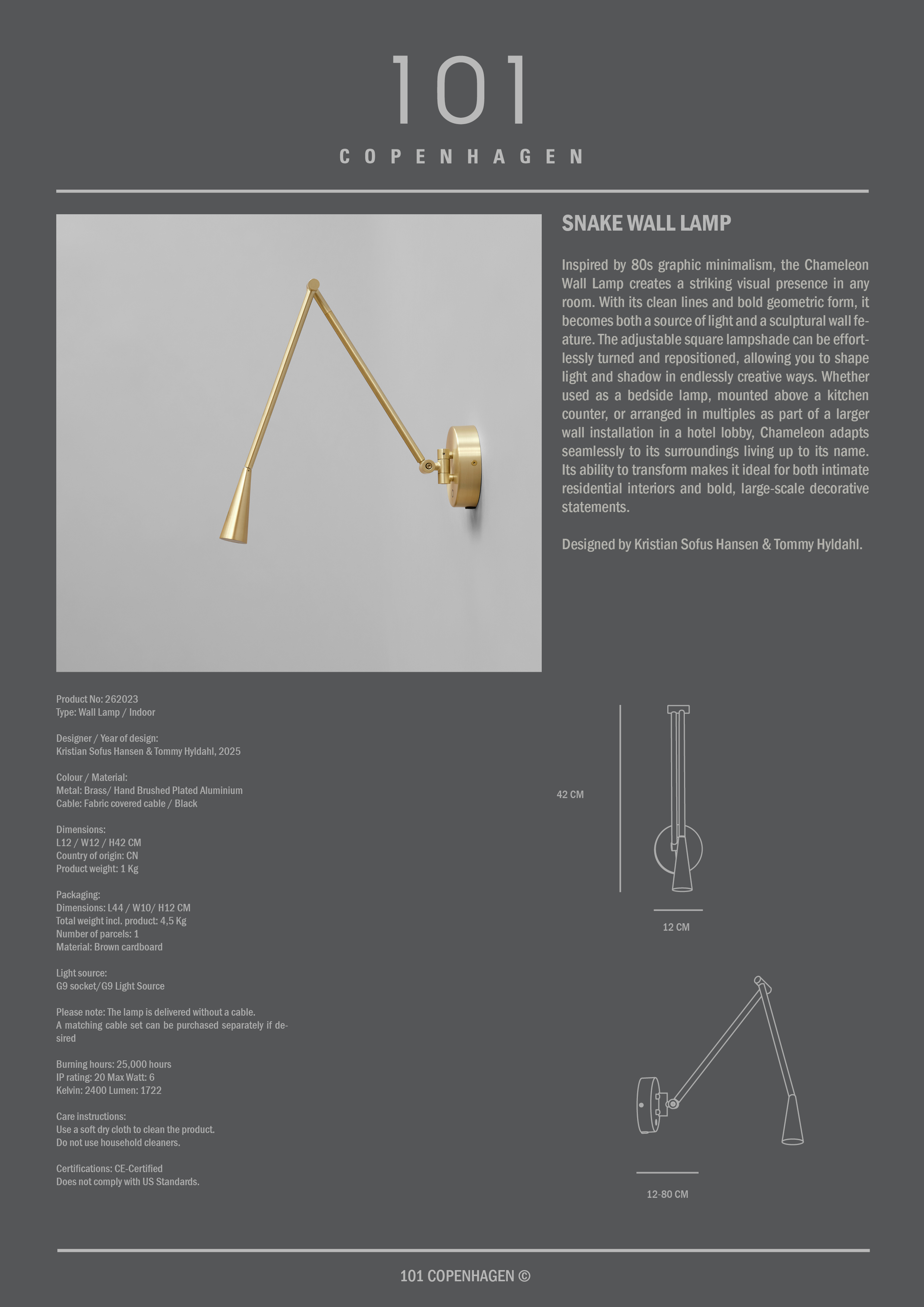 101 Kopenhagen Slang Wandlamp Messing