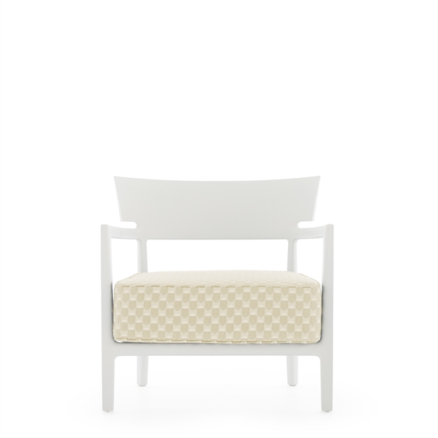 De CARA MAT fauteuil van Kartell is ontworpen met comfort en veelzijdigheid als uitgangspunt. De uitnodigende, gestoffeerde vorm wordt gecombineerd met een lichte en moderne constructie. De stoel is geschikt voor zowel binnen- als buitengebruik, waardoor hij ideaal is voor diverse ruimtes, van woonkamers en lounges tot terrassen en balkons. De zachte kussens zorgen voor een ontspannen zitervaring, terwijl de duurzame en weerbestendige materialen ervoor zorgen dat de stoel bestand is tegen wisselende weersomstandigheden zonder in te boeten aan comfort. Het ontwerp combineert een eenvoudige vormgeving met textieloppervlakken die warmte en diepte toevoegen. De Liberty-varianten voegen een decoratievere en levendigere kenmerk toe met karakteristieke patronen die contrasteren met de strakke constructie en de stoel een persoonlijker karakter geven. Een flexibele loungestoel die functionaliteit, comfort en een modern design combineert in één totaaloplossing.